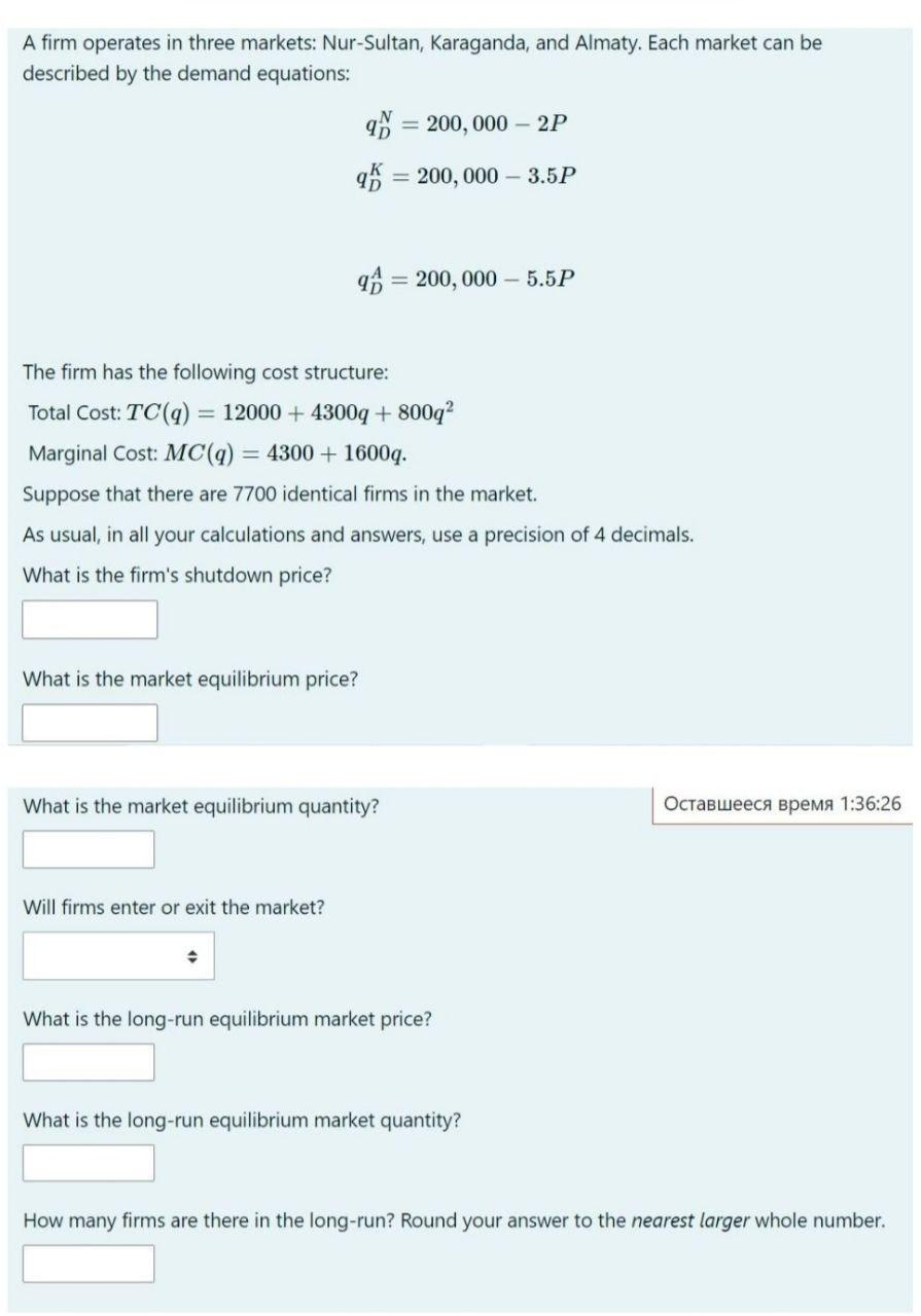 Solved A Firm Operates In Three Markets Nur Sultan Chegg Com